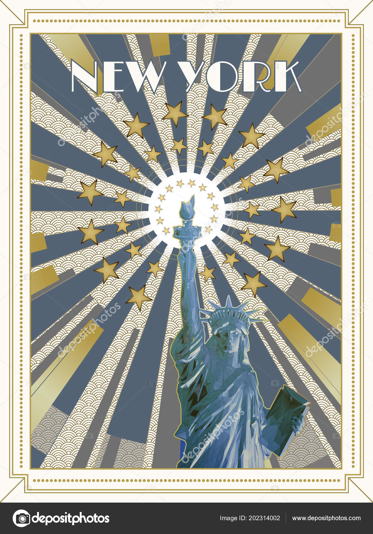 Polygonal Statue Liberty Front View Colorful Shine Gold Star Element Stock Vector Image By C Jolygon 202314002